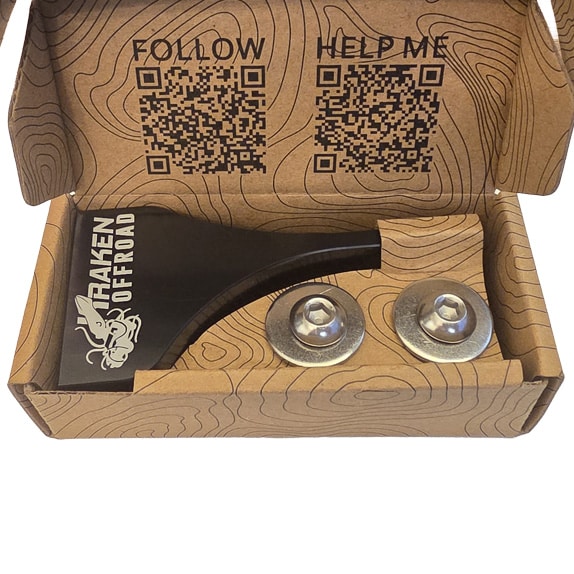 Each bracket is machined from aluminum and finished in black anodizing, with a laser-etched Kraken logo on the side. The design has been validated with stress analysis for demanding off-road use—because the trail will absolutely test anything that isn’t built right.